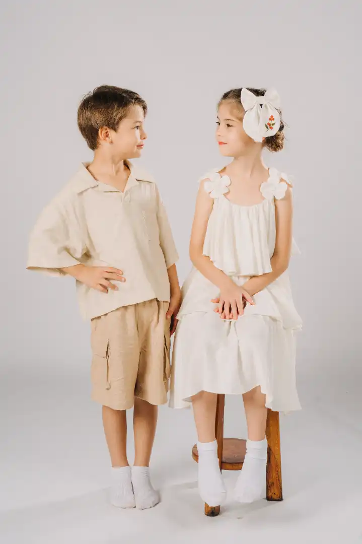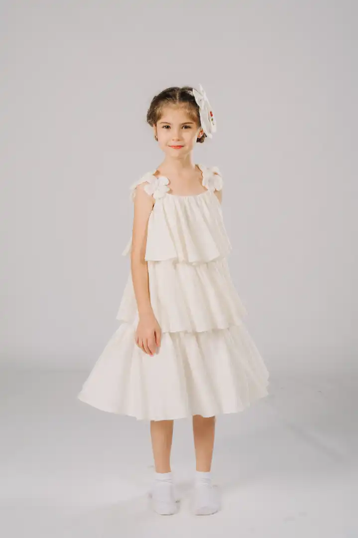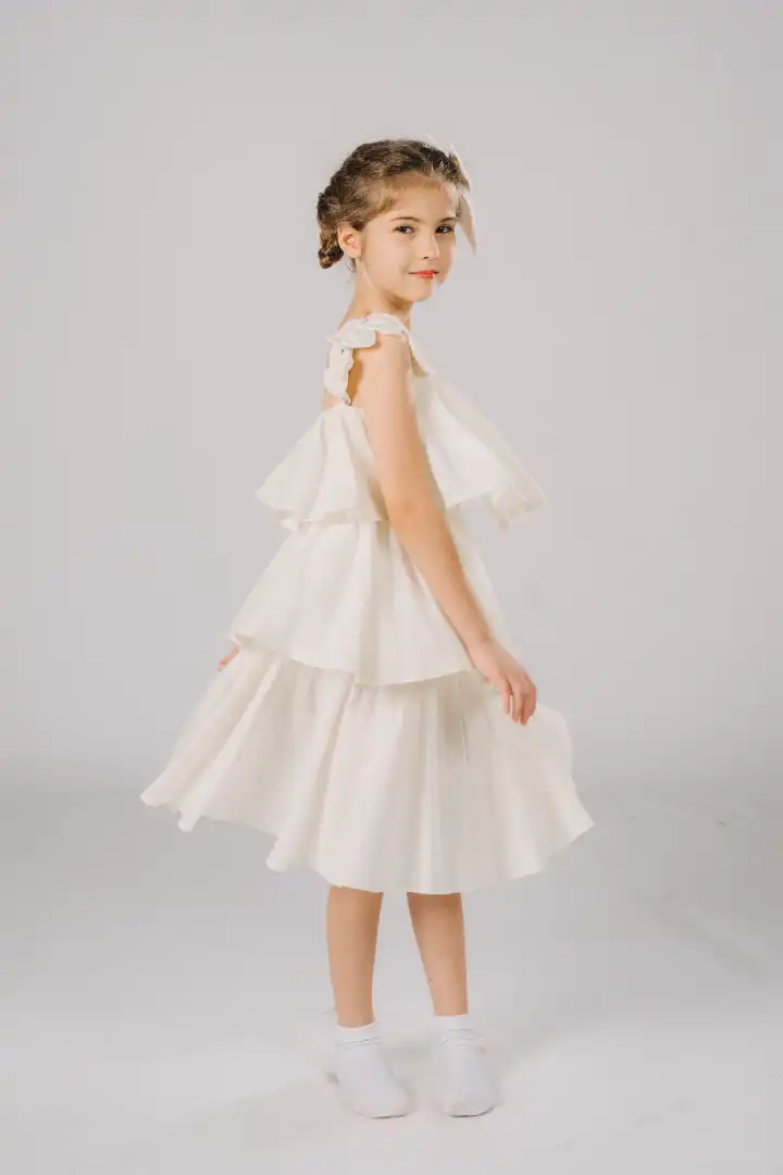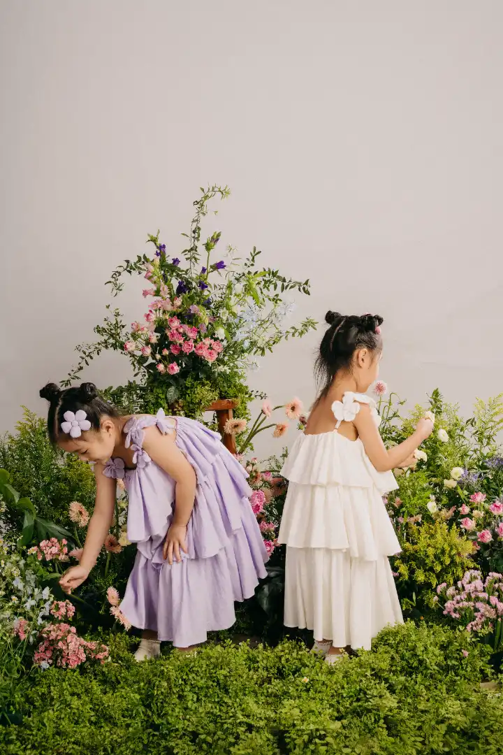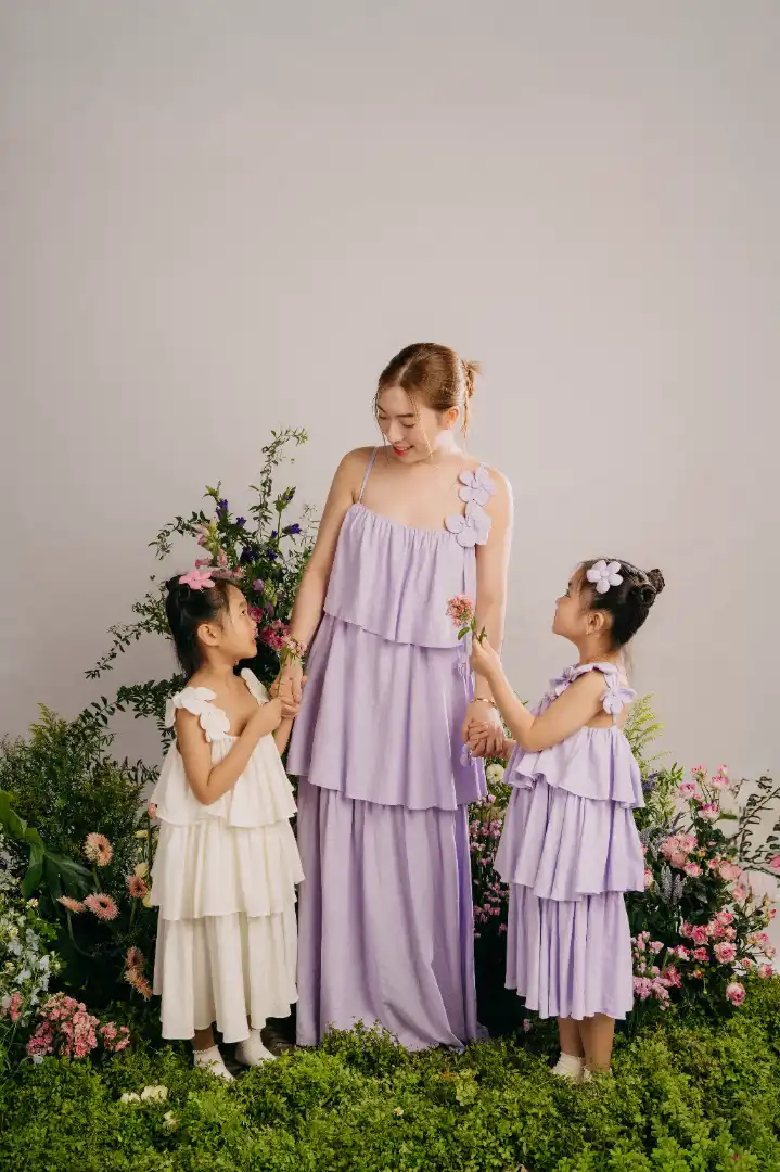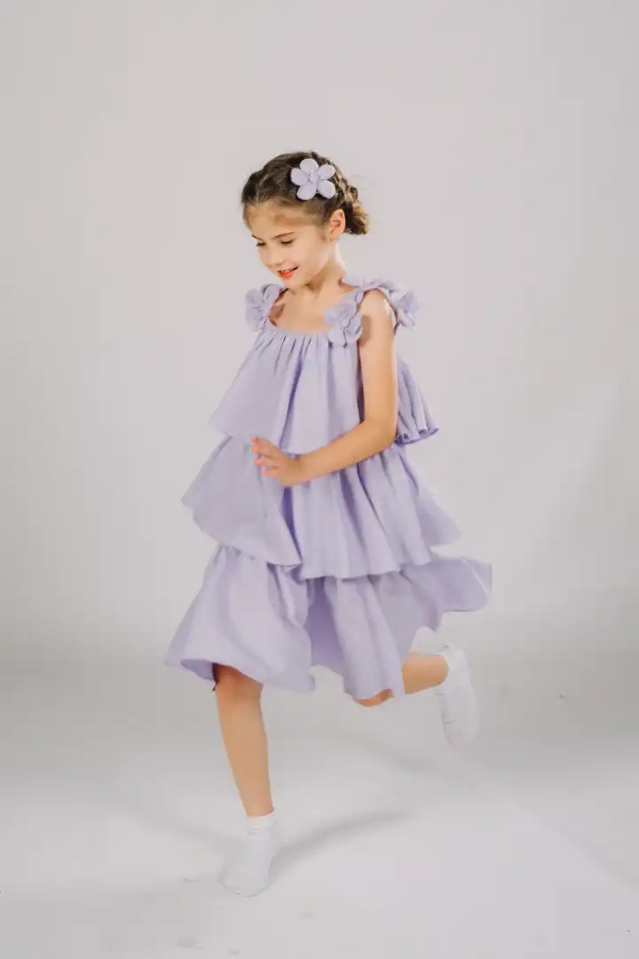 Little Lilac features a soft pastel purple tone with layered tiers that create a graceful, flowy silhouette. Made from breathable fabric, it ensures all-day comfort—perfect for outings or special occasions.