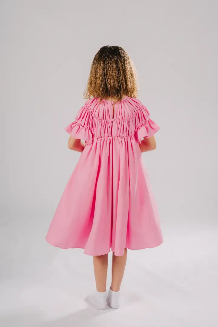 Tiny Sakura features a soft, breathable design with a linen-rayon outer layer for an airy feel, and a cotton inner layer for all-day comfort. Perfect for light, effortless summer styling.