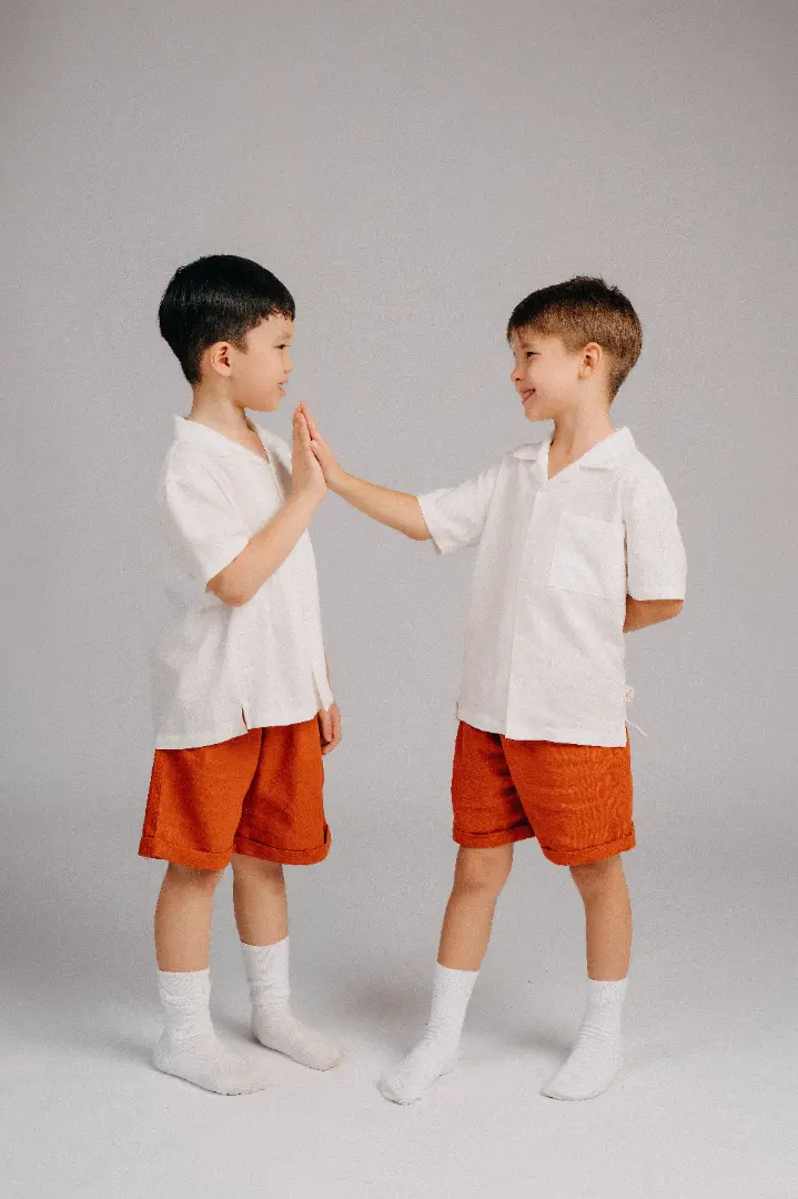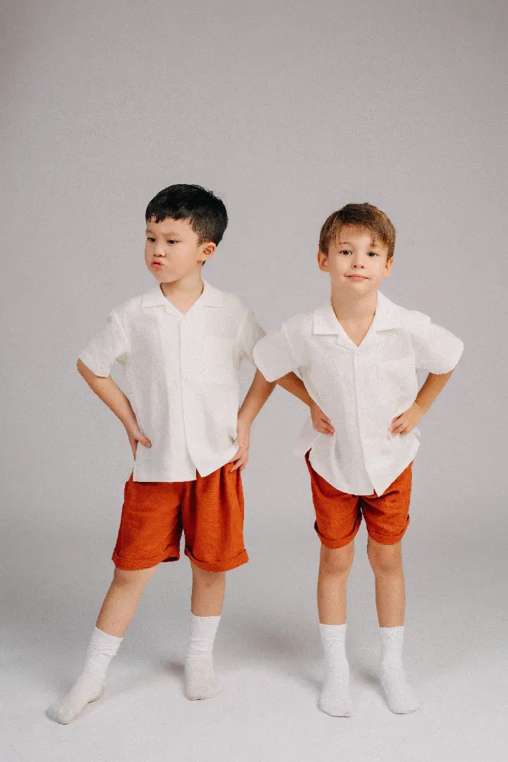 Lấy cảm hứng từ nét phóng khoáng, Áo Su Hào là lựa chọn hoàn hảo cho bé. Thiết kế áo cổ V (cổ cuban) thời trang trên chất liệu linen pha rayon mềm mại, thoáng mát. Kiểu dáng thoải mái, năng động, giúp bé tự do vận động mà vẫn giữ vẻ sành điệu tự nhiên.