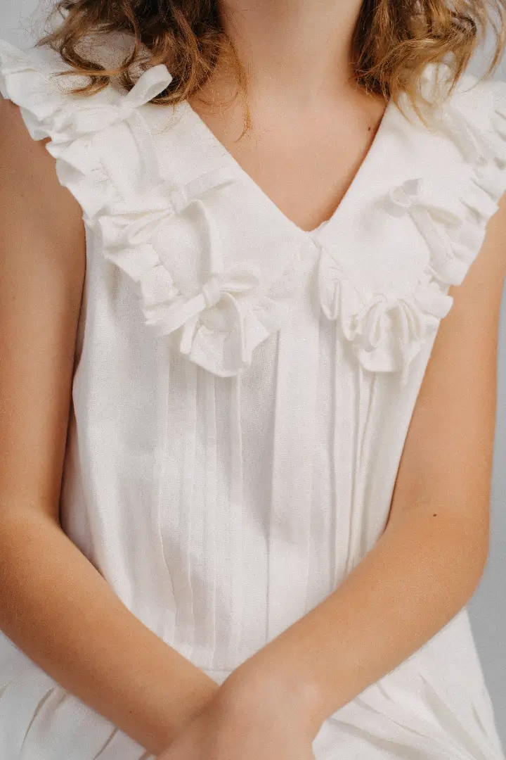 Chất liệu dệt từ sợi lanh tự nhiên, kết hợp sự thuần khiết của thiên nhiên với vẻ đẹp tinh tế, mang đến cảm giác thoải mái, an toàn và sang trọng bền vững cho trẻ em.