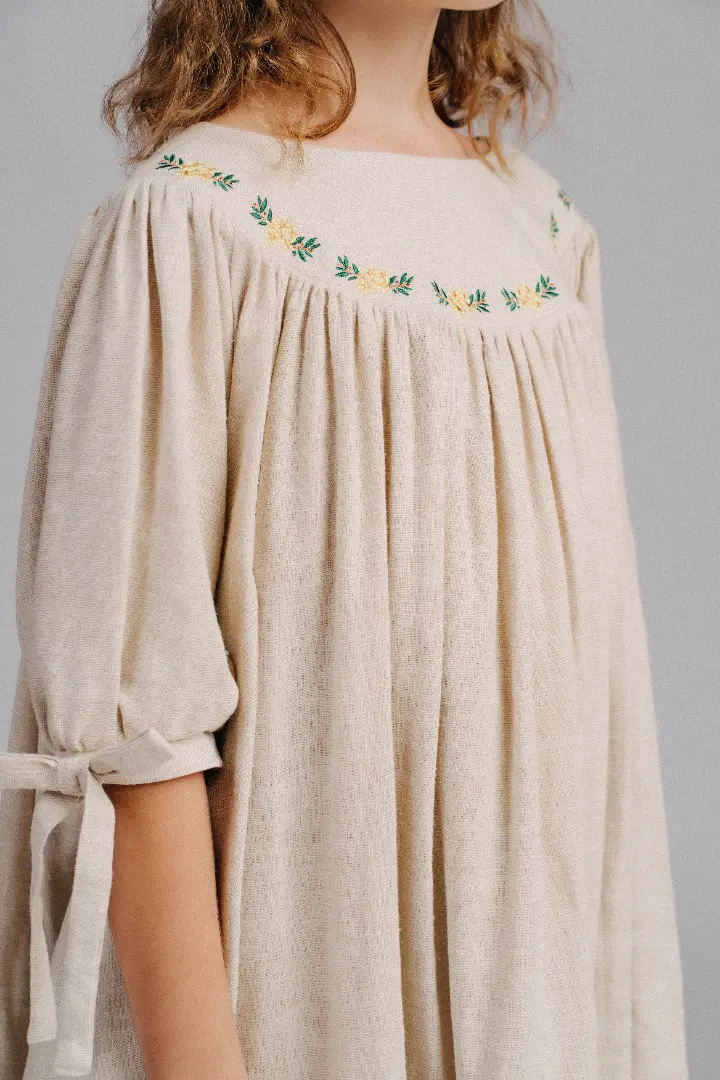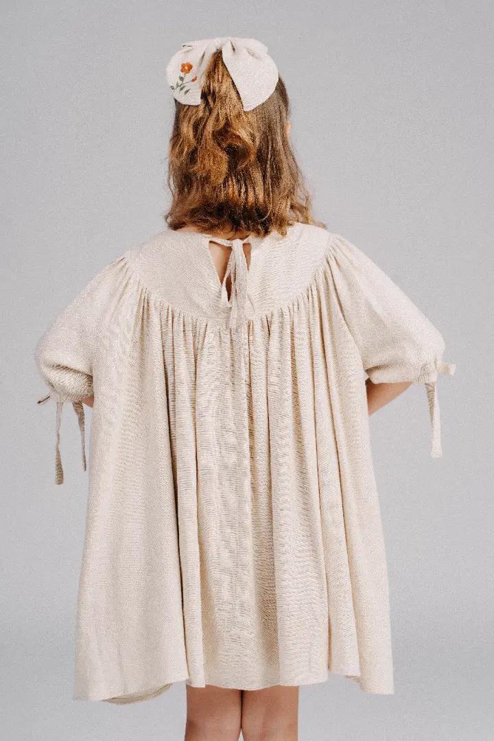 Chất liệu dệt từ sợi lanh tự nhiên, kết hợp sự thuần khiết của thiên nhiên với vẻ đẹp tinh tế, mang đến cảm giác thoải mái, an toàn và sang trọng bền vững cho trẻ em.