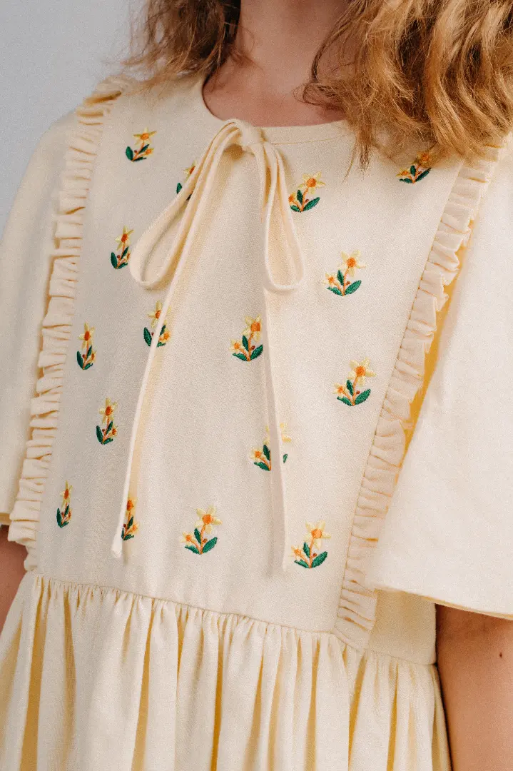 Lấy cảm hứng từ hoa Vạn Diệp, Vạn Diệp Dress mang vẻ đẹp mềm mại, tự nhiên với chi tiết thêu tay tinh tế. Thiết kế có tay thả lỏng và dáng "váy bí ngô" phồng nhẹ, tạo nét tinh nghịch mà vẫn thanh lịch. May từ linen cao cấp lót cotton thoáng khí, váy đảm bảo sự thoải mái cho bé tự do vận động.